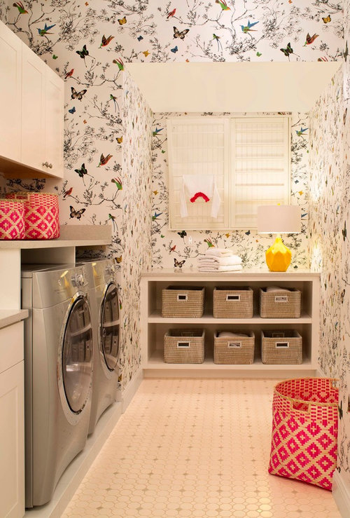 This wallcovering is called Birds & Butterflies - Multi on White by Schumacher.