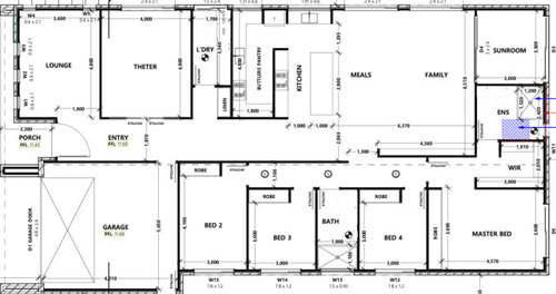 Comments (28)windows in master bedroom need to allow views and privacy and much as i would prefer bed on NE this keeps the bed in view towards and from family room so prefer bed on south wests wall and small sliding doors pushed towards north side of room with tall narrow window beside sliding door and highlight window for light with privacy and wall space for chest of drawers...acknowledging theta the pwdr doesn't have a window but my suggested arrangement uses less total space more efficiently and is better for older kids and long stay visiting parents (more people can use the various options at the same time) and a small ventilating skylight will exhaust and brighten the toilet and vanity area ...the wide door into the lounge can be a stacker or stable door so you need to investigate local options (and everything is expensive unless it does what you want...we always use solid core doors that can be ten times the price of a basic hollow core door but love them so we economise elsewhere) and barn door between entry and family would be OK as long as you like them and it doesn't compromise lounge doors but could look ok if both doors are the same style and different widths...and location of dishwasher is personal and if you have already been unhappy with sink in main kitchen then have it in the scullery...main advantage of my suggested kitchen location is that it's closer to the front and the family area and external doors and the pantry uses the central space that can be much better illuminated with another ventilating skylight instead of a tiny external window and noisy exhaust fan...See More- 18 days ago