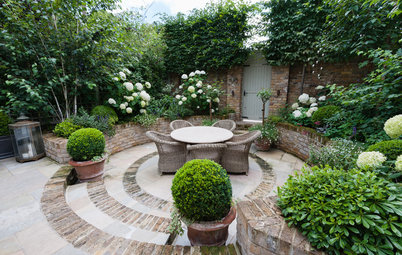 Here landscapers Ivy and Bloom created layers of planting that give the sense of a bigger garden: lush creepers climbing the walls, a mid-level of flowering annuals and a foreground of clipped hedges. Changing the surface from paving to gravel also creates much-needed variety in a tiny space.