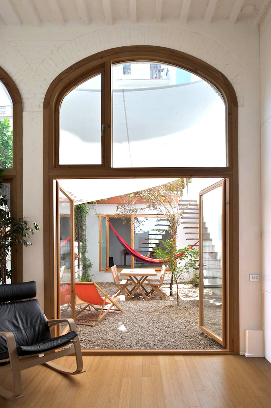 Features: A sliver of a courtyard made great with hot pink walls and a deep hammock.