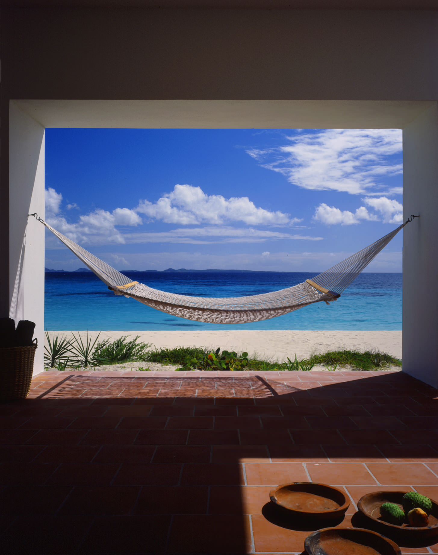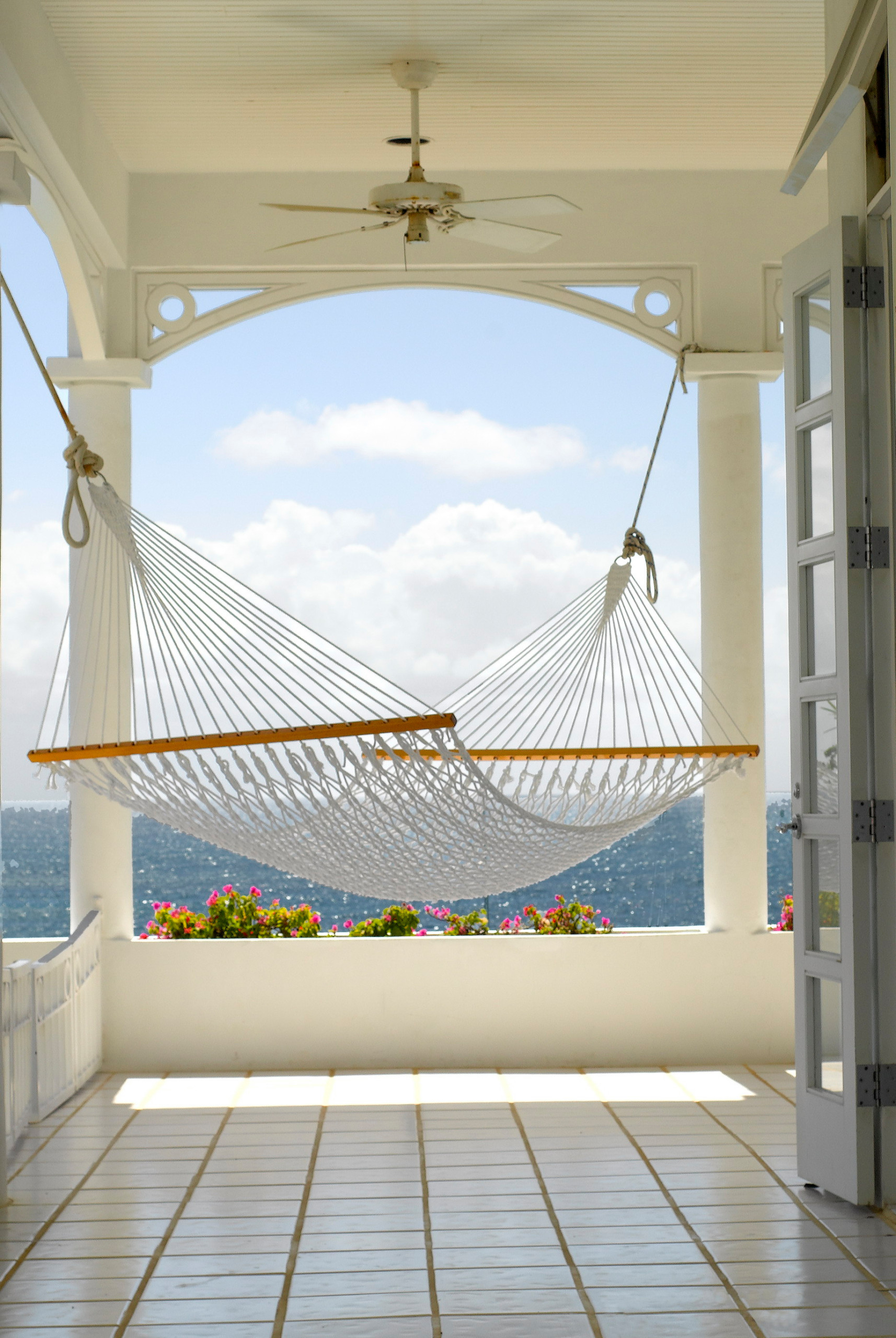 Features: A tiled verandah and a string hammock with unobstructed ocean views.