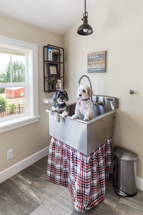 10. An off-the-shelf pet-bathing station or even a big laundry sink with a pull-down nozzle tap can fit the bill for bathing small dogs, as you can see in this Oregon house.