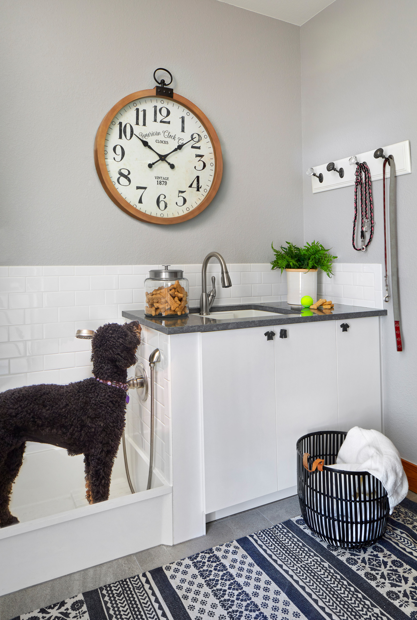 13. This dog-washing station makes good use of a slightly awkward corner in the laundry of a Maryland home. The swing-arm towel bar mounted above it is a handy touch.