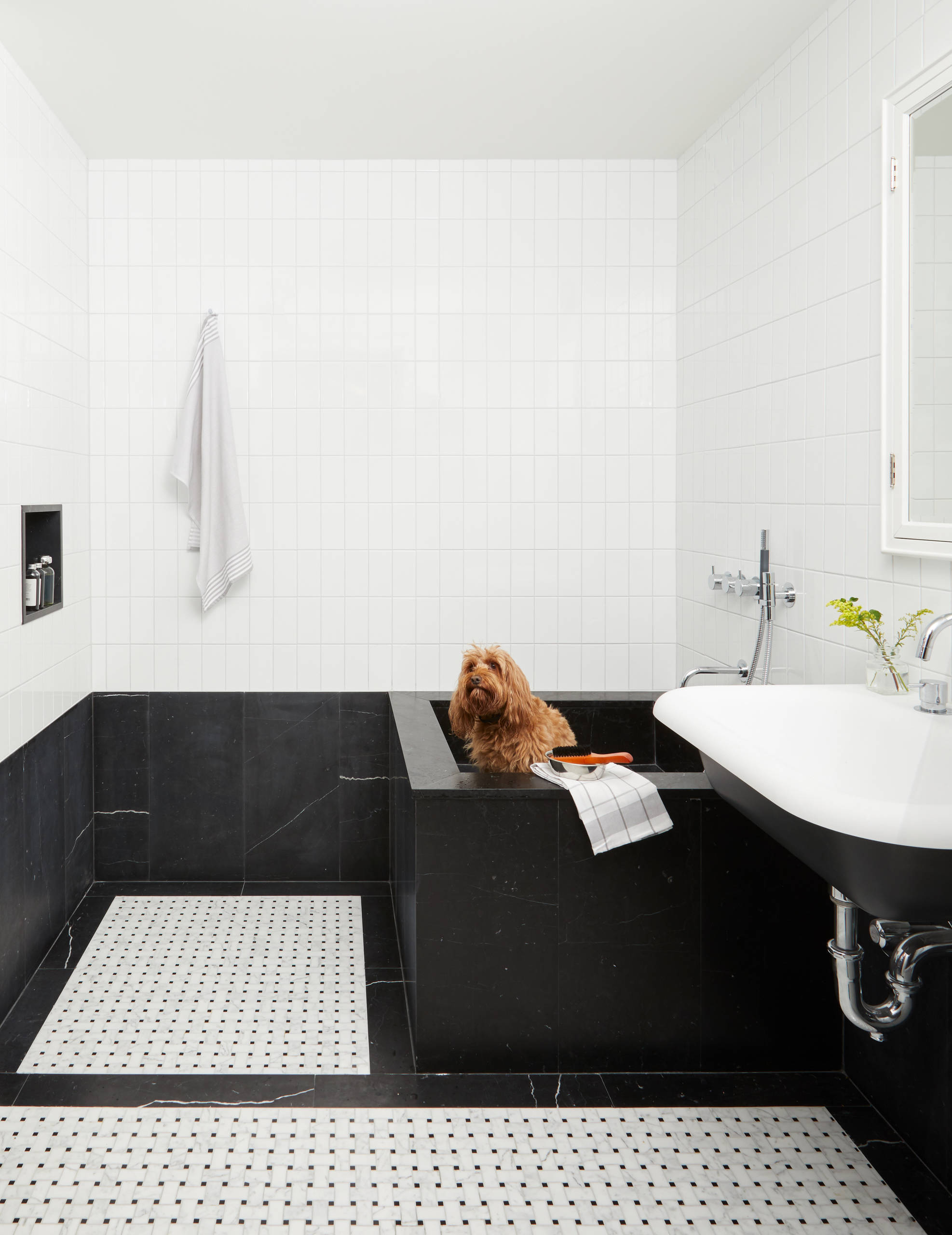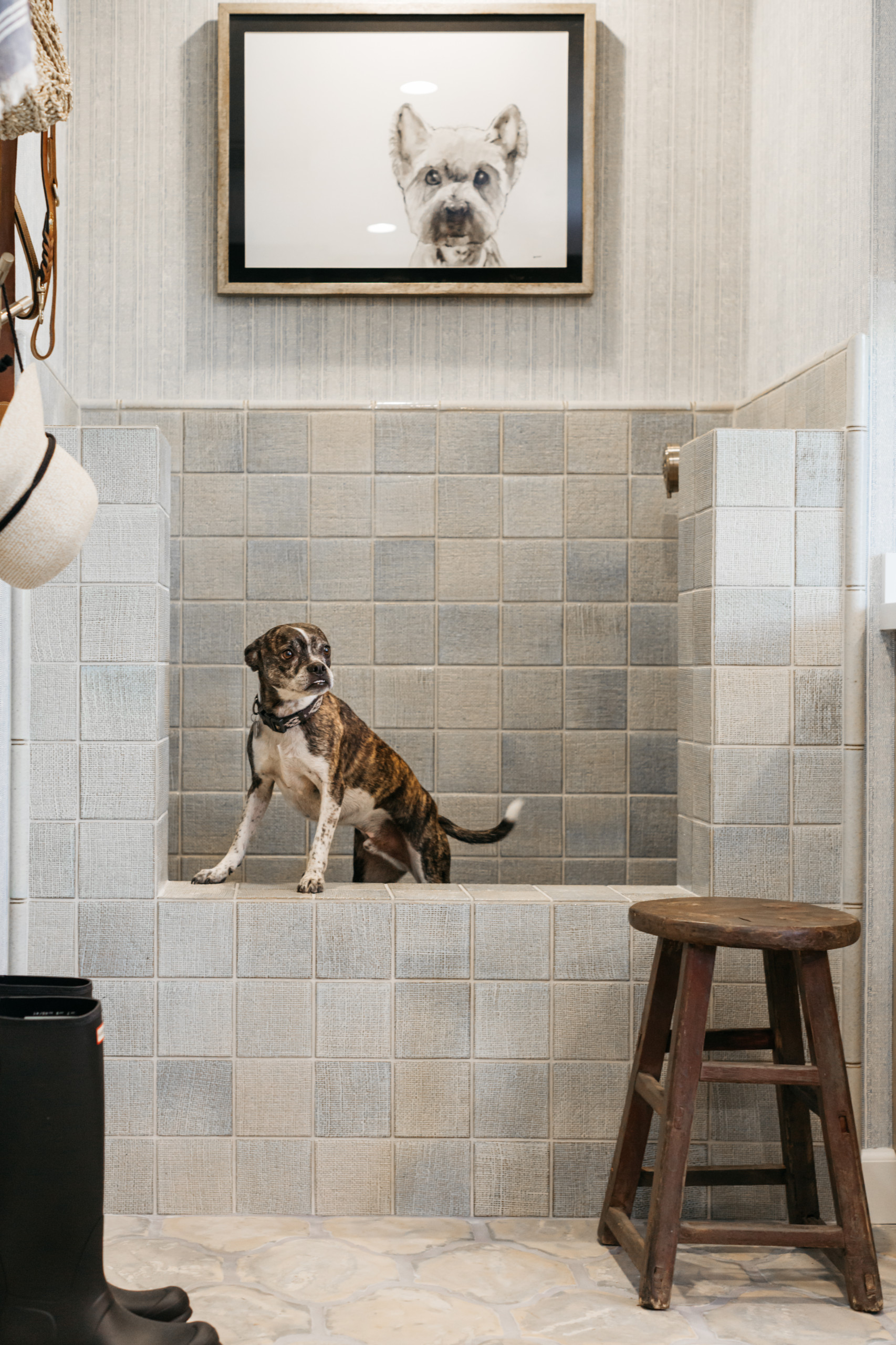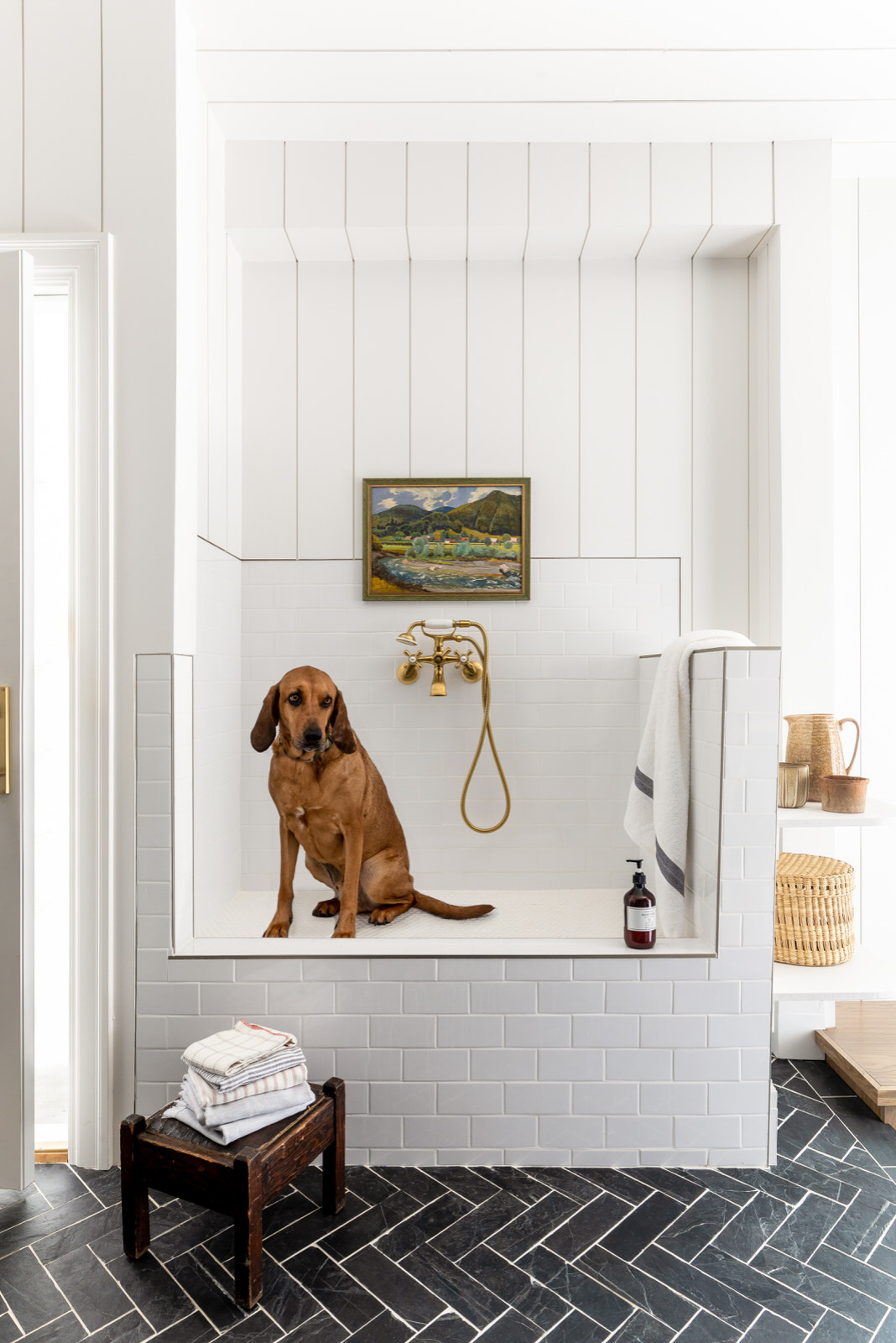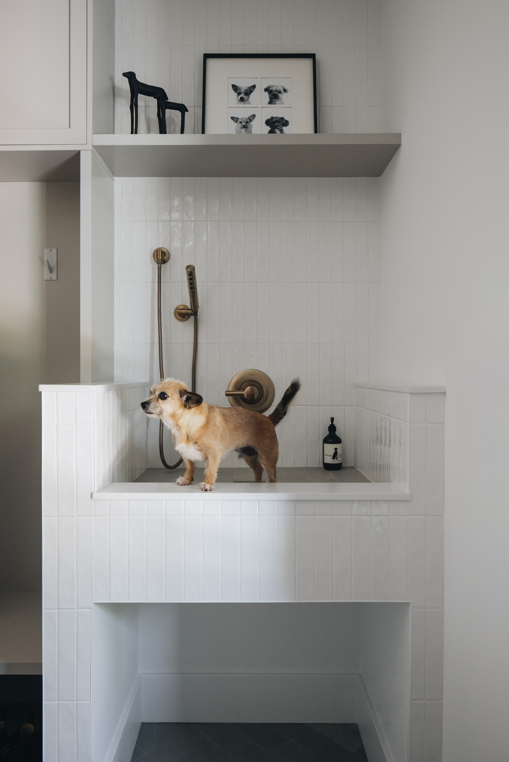 24. In another dog-friendly design, this elevated shower and its occupant both embody the idea of tiny and mighty. Even the bottle of pet shampoo oozes understated modern luxe.