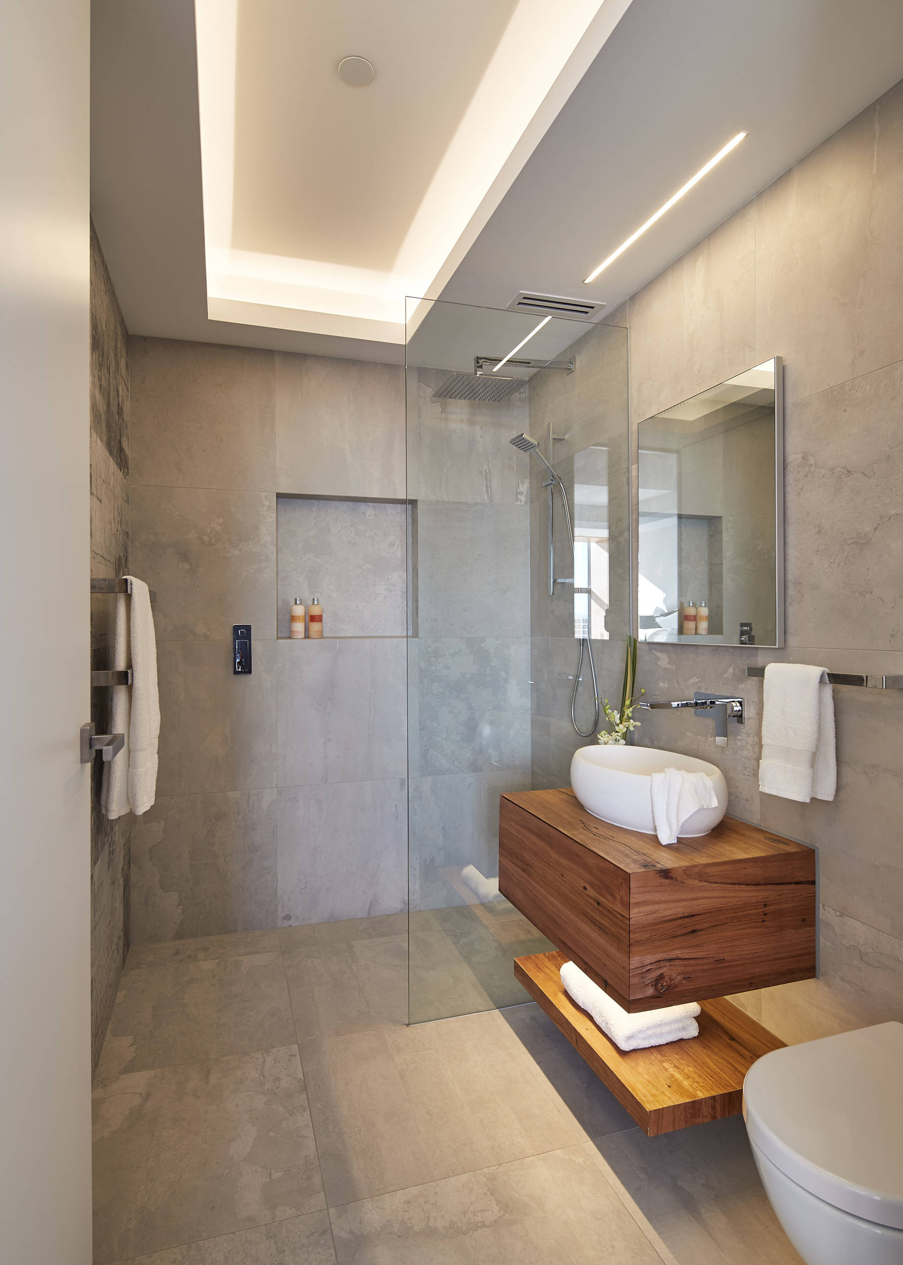 According to Mansur, concrete-look tiling is still a strong player – its raw appeal and soft colouring striking the perfect balance between sophisticated and edgy. For maximum effect, lay large-format tiles floor-to-ceiling with minimal grout lines. This is a particularly good strategy in smaller rooms, as seamless swathes of large-format tiles will visually open the space.