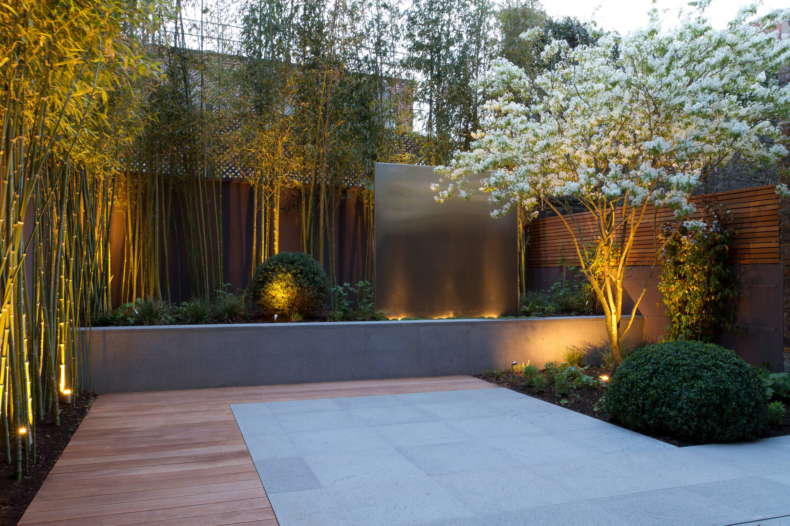 Light is a very important feature of feng shui gardens as it represents the fire element as well as life-giving yang energy (yin is dark and yang is light). However, don’t go overboard with outdoor lighting, as light, like every every aspect, must be balanced in feng shui (otherwise you could end up with a garden that looks like a mini Disneyland). In this lovely garden, subtle uplighting is used to accentuate the form of the bamboo; a favourable plant in feng shui that is said to bring peace and energy to your home.