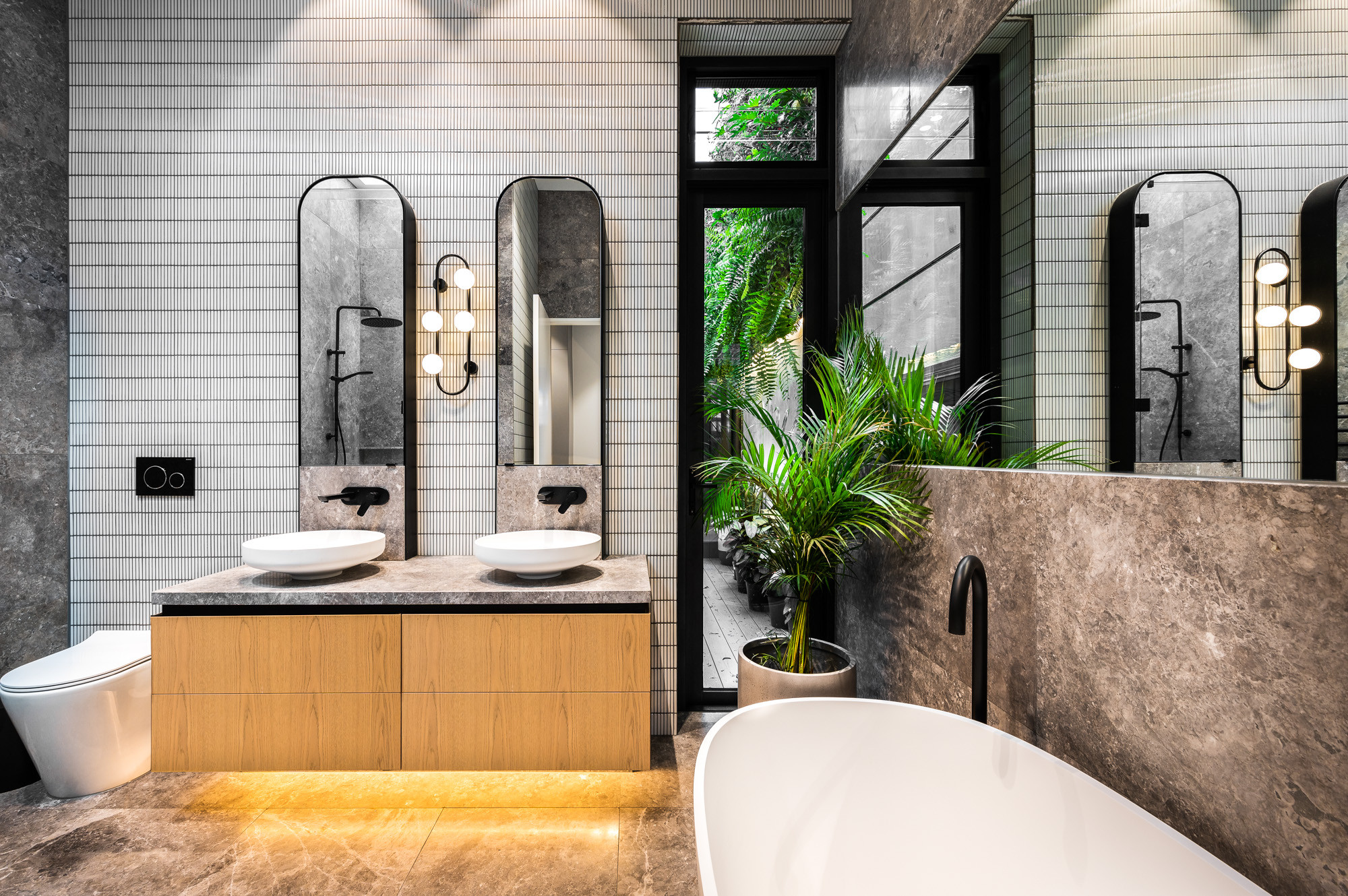 “If you have a high ceiling in your ensuite, such as 2.6 metres or above, consider adding wall-mounted uplighters to visually lift and expand the space,” says Wild.