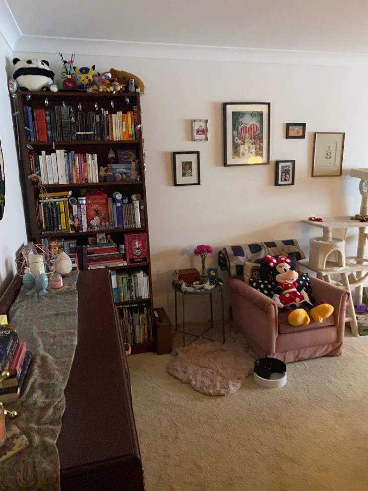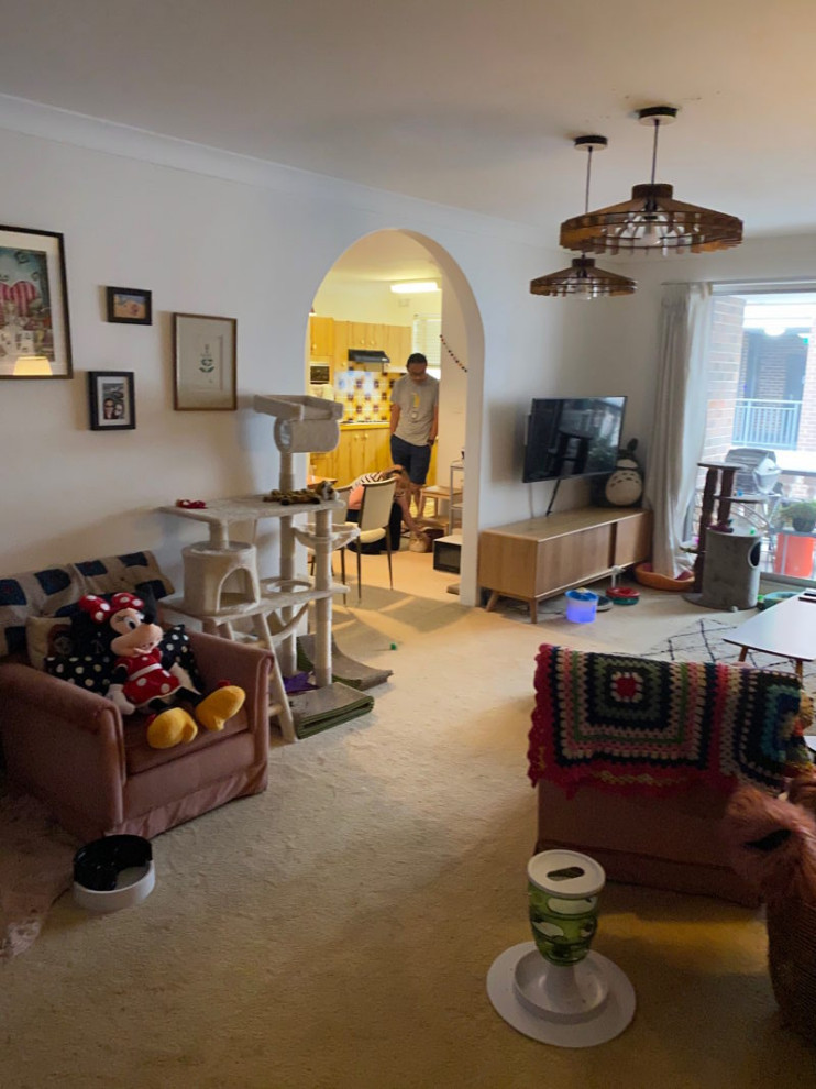 The owners love reading and didn’t have anywhere to store their collection of books properly. We added a large bookshelf with a funky rug for their favourite armchair to sit on. This bookcase gave all the books in the apartment a home, which meant there was a lot less clutter in every room.
