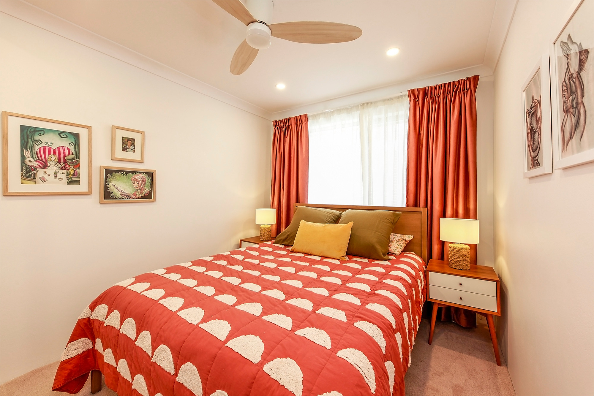 Only one small structural change – moving the laundry door. Plus, we swapped the bedrooms around so we could fit a queen-size bed in the main bedroom (up from a double) and maximise storage.