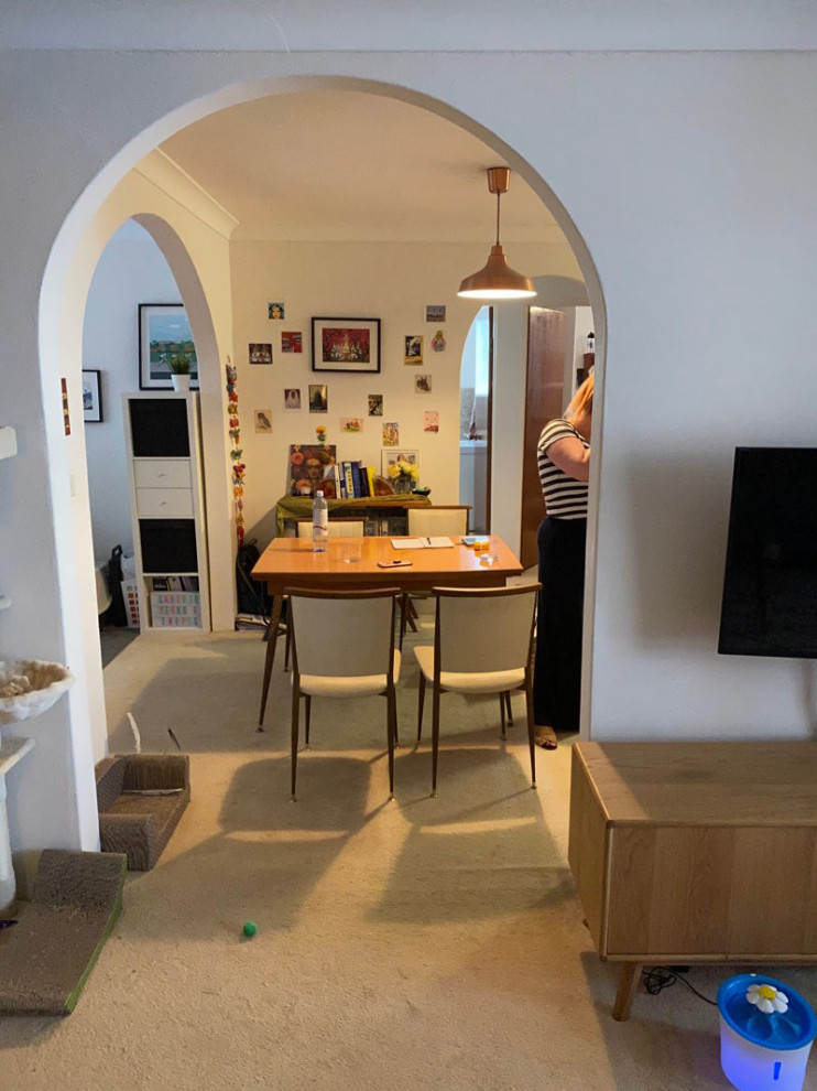 It could best be described as a visual car crash. The apartment felt heavy, drab and depressingly dark. Everything was squashed together; there were no clearly designed zones and storage was inefficient.