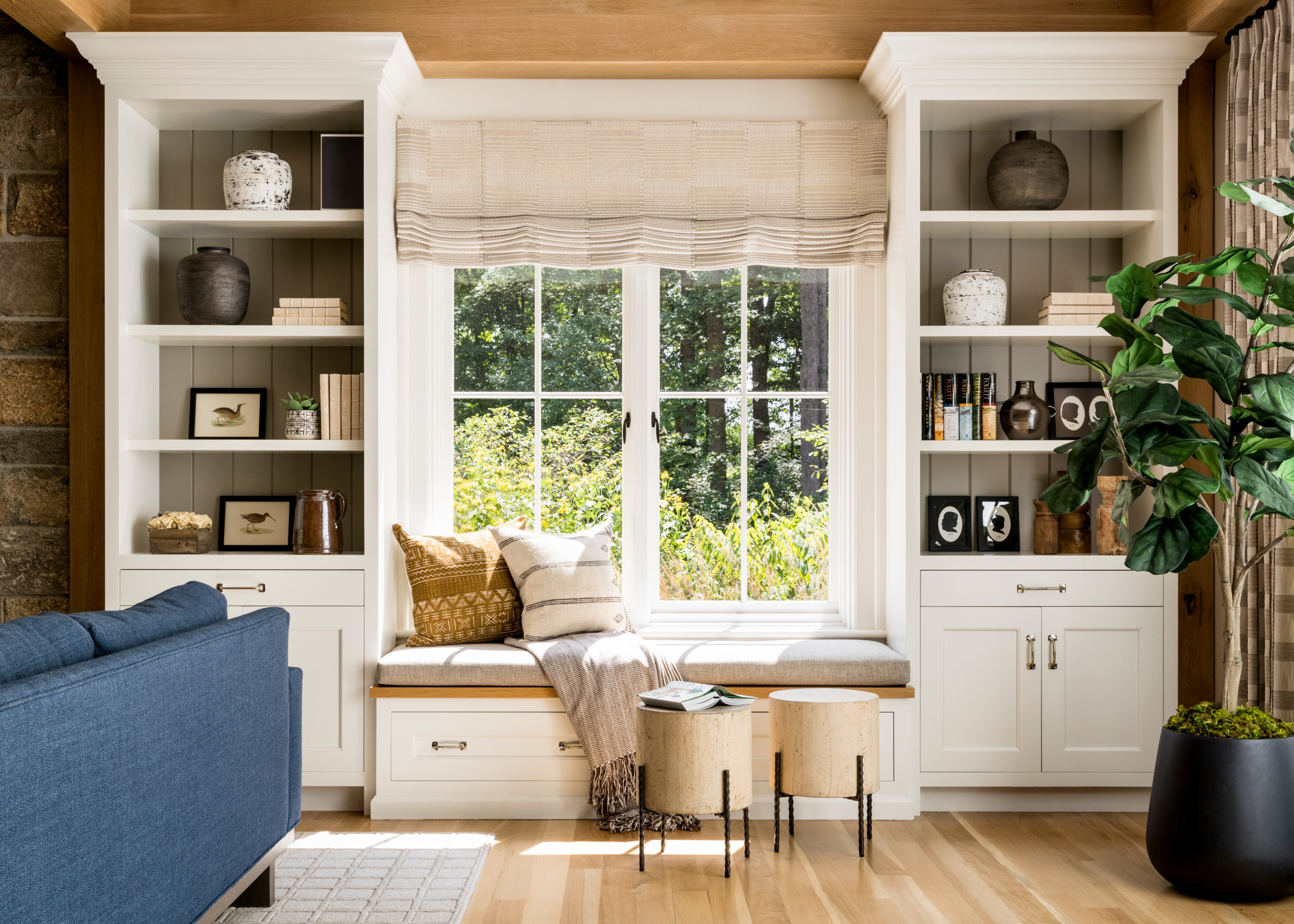 A living room overhaul is an opportune time to address your storage needs. For custom-built furniture, I prefer to have specific containers or baskets in mind or on hand to build around, instead of vice versa.