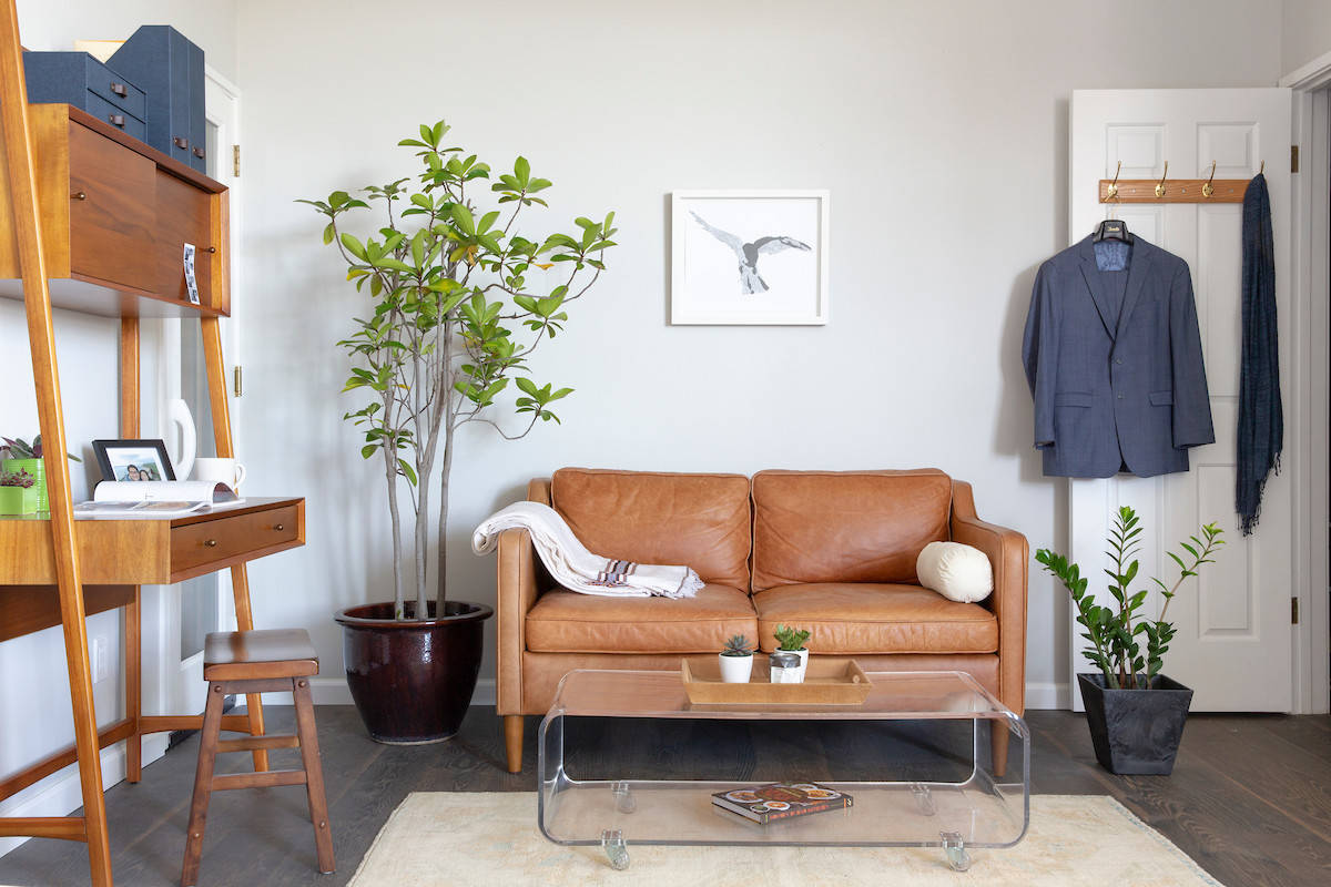 Remove items that don’t belong in your living room and return them to their proper places in your home. Next, take some time to decide what will remain in your living space and what you may want to declutter.