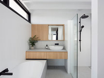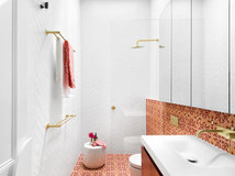 Be aware that in some instances floor wastes are mandatory, so ask a reputable certifier to make sure you can legally do away with your floor waste before you eliminate it from your design. If you do remove your floor waste, it’s still obviously important that adequate allowance is made for drainage in the bathroom. This is a little easier if there’s no bath in the bathroom, and the shower is the main area that requires drainage. In this case, the set-down in the floor may be easier to achieve due to the smaller footprint of the shower as compared to the whole bathroom.
