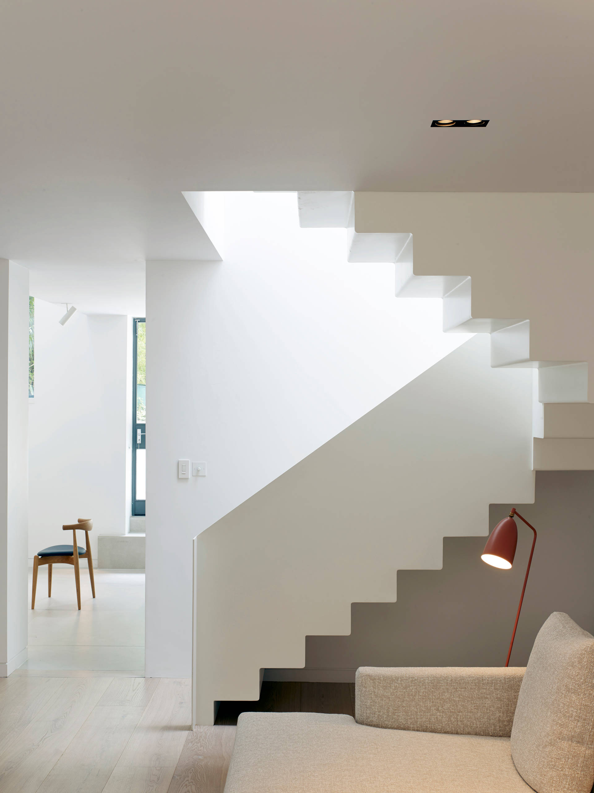 Talk to your designer about different lighting approaches; there’s so much more you can do than carpet bomb a space with downlights. This glazed dining room is a great example. A space like this forces the designer to look at alternative locations to fix the lighting, as most of the space is glass.