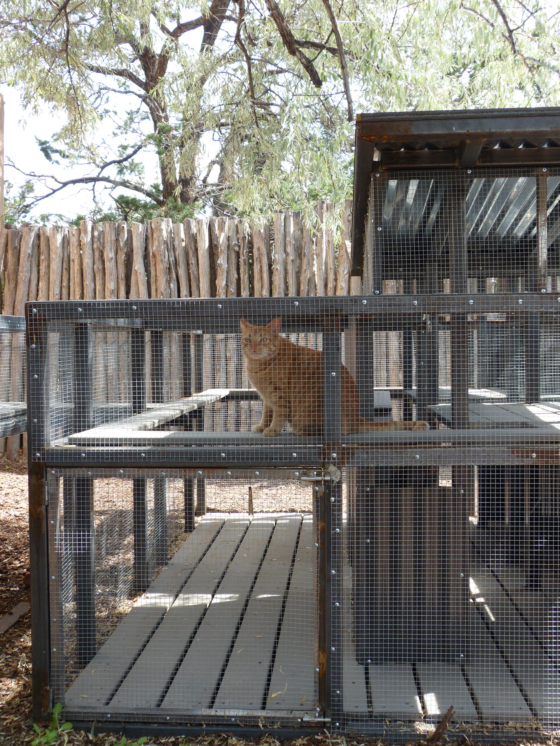 The doghouse pictured previously, with its covered deck and cosy corner location, is fit for a canine king. But cats are just as pampered. Look at this oversized cat house which gives felines the chance to run, play and rest up comfortably.