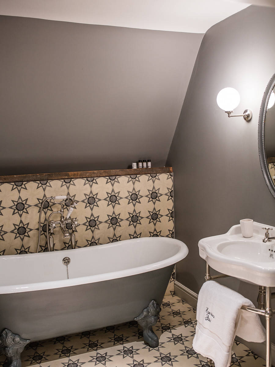 Sometimes, it’s the simplest decisions that can prompt the biggest style statement. In this bijou attic bathroom, the owner has continued the striking patterned tiles from the floor onto the wall. Not only does this create an interesting ‘wraparound’ effect, it also visually stretches the space as the floor and wall melt into one another.