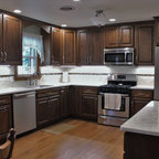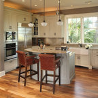 don't like different color island, don't like light floors, like wall cabinets and cabinet color