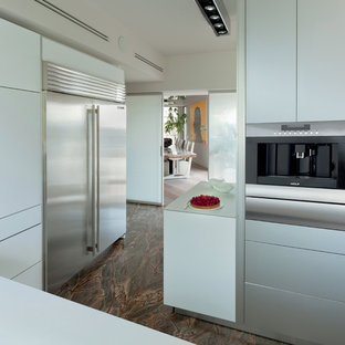 Built into cabinetry, works like a drawer: