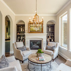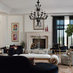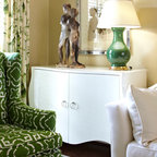 The Formal Living Room in this Alabama Residence is filled with custom details - whether it be the draperies, upholstery fabrics or the hand painted built-ins.