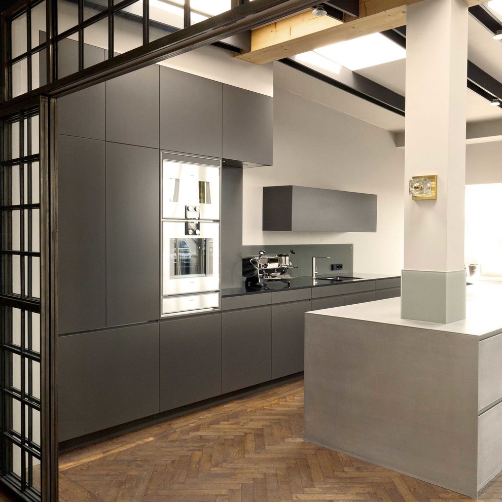 Graue Front kombiniert mit fischgrätparkett
