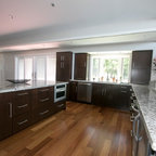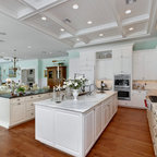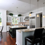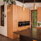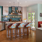 Very similar layout (Island in the middle with stove behind and centered, refrigerator to the right. Love how the room is framed too.