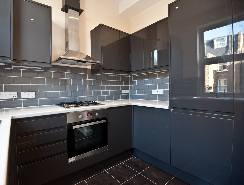 Both flats were designed with neutral colours for the floors and walls with a stylish modern grey and black open plan kitchen installed. The bathroom colour scheme was kept simple and classic with ceramic tiling and white goods.