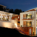 Nice exterior material combination (Also, utilization of wooden frames rather than aluminum removes the commercial building feel from the house