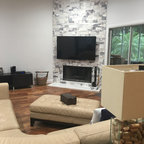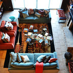 Floors but in a brown tone - cement floors with a wood ceiling to soften the cement