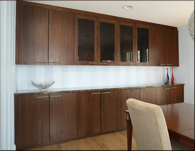 The term "Built In" means more than just sized to fit. It means that the cabinets are attached to the walls and trimmed in so that they become part of the room. These are not meant to be moved. This usually involves starting with a clean slate and really listening to what the customer wants. We don’t try to fit you into some pre-designed box system when we design your built in wall system. What gets created here is unique and appropriate for your room and your needs.