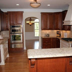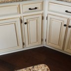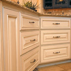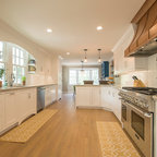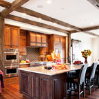 The beams in the ceiling and recessed panels in the kitchen cabinets add a lot of texture and detail in this beautiful kitchen renovation.