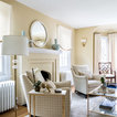 I think the fireplace would look better if it was a contrasting color to the wall....too much of the same color!