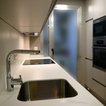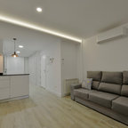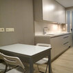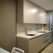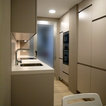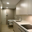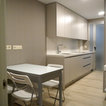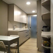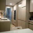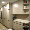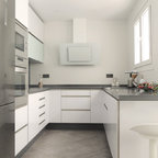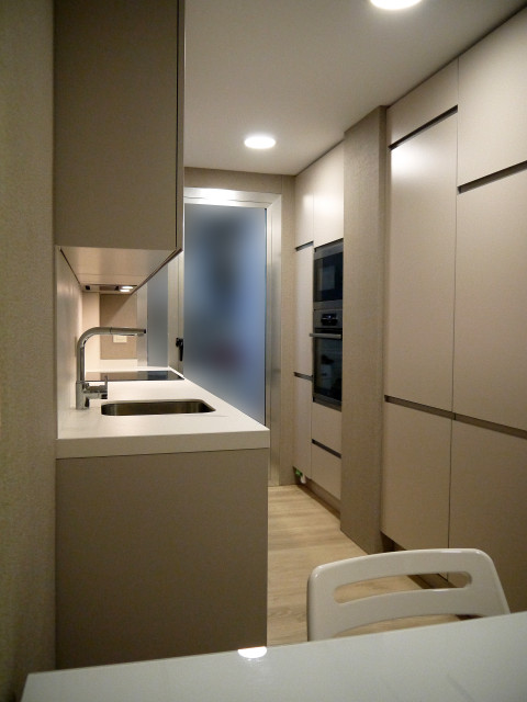 cocina con muebles altos y bajo en una zona de trabajo y mueble columna en zona de almacenamiento ( frigorifico integrado oculto )