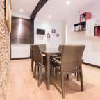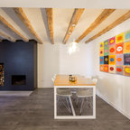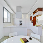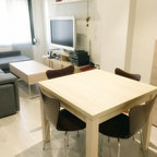 Colocación mesa frente a la cocina. No hay necesidad de una isla teniendo la mesa