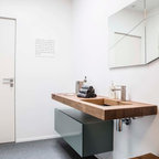 Custom Wood Counter Top and Small Vessel Sink for this Small Space