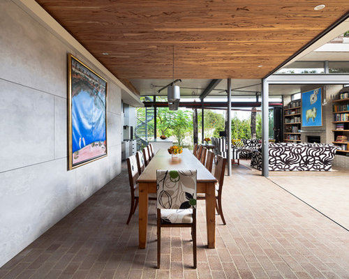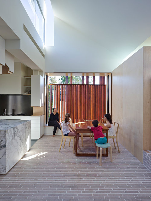 The elegant brick flooring uses the same bricks as the walling, Bowral Bricks in Simmental Silver, laid on edge.