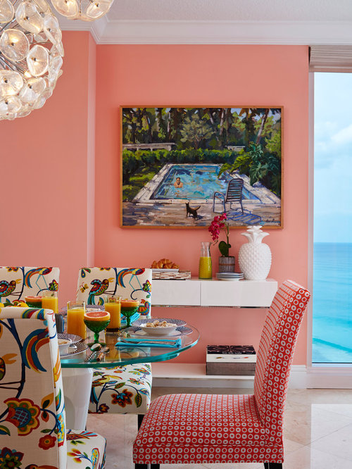 346 Dining Room Design Photos with Pink Walls