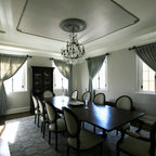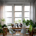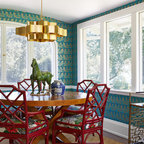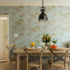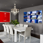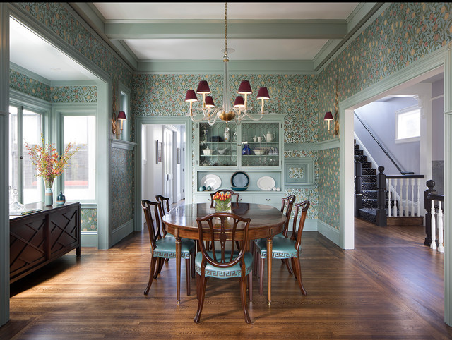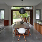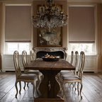 Dining and living room: interesting mix of old and new ... like the two paint colours