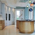 Multiple pendant lights add texture and mood lighting, whilst adjustable spotlights light up key shelves and spots on the island at nightime.