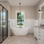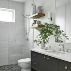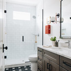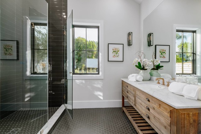 Project photographer-Therese Hyde This photo features the casitas bathroom of the modern farmhouse.