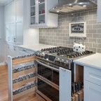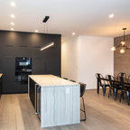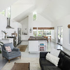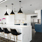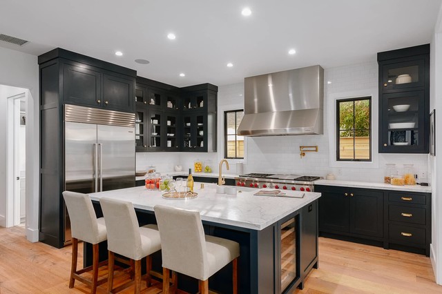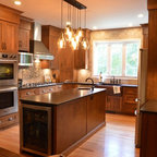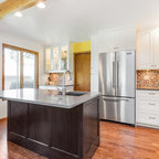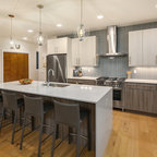 Project photographer-Therese Hyde This photo features the kitchen with large island and stainless steel appliances.