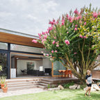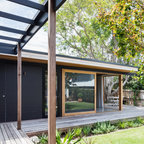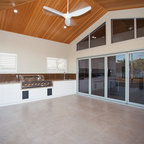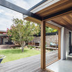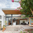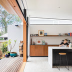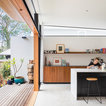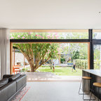 Love the big sliding door. Thought how it is cool to have a door sliding into a wall - but would that cost considerably more than bifolds or a standard twin-opening door?