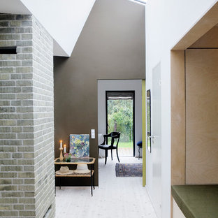 En mørk teglbase skyder sig ud af den græsbeklædte skråning, og en hvid, let æske ligger ovenpå. En ren og enkel glasfacade mod syd trækker sollys og søudsigt ind i stuen. Felter med trælister bløder op og skaber varme inde såvel som ude.
