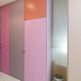 Par séquence , une lame de verre satinée s'inscrit dans le déroulement du meuble coloré.