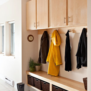 Custom entry hall with radiused paneling. Architectural Millwork by Toby Leary Fine Woodworking; Builder E.B. Norris; Architecture by Catalano Architects, Inc.; Photography by Richard Mandelkorn