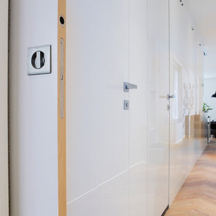 La porte coulissante laqué brillant apporte luminosité même dans le couloir. Le design est épuré et moderne.