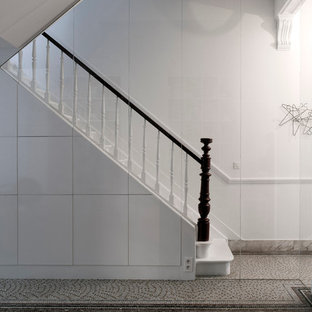 Toute la cage d'escalier est en Oxford stone de Farrow&ball et la moulure est peinte en railings.