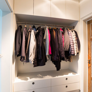 Die offene Garderobe bietet viel Platz für Jacken und Mäntel der Bewohner und Gäste. In den Schubkästen verschwinden Schuhe, Mützen, Handschuhe und Schals, in den Fächer oberhalb z.B. Fahrradhelme oder Taschen.