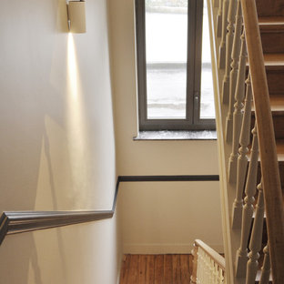 Marches et contre marches sont en bois naturel ainsi que la main courante. Les barreaux eux ont été peint en Wimborne white tout comme les plafons.