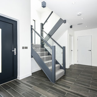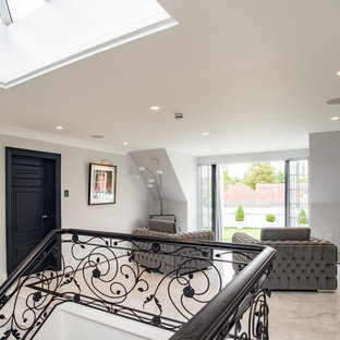 Star White Polished Marble tiles flooring and bespoke staircase with a Nero Marquina Marble border from Stone Republic.