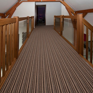 Modern Barn Build with Chunky Oak Balustrades on a Profiled Oak Staircase. The Strings we inset to enable the client to have the plasterwork finish on the underside of the Treads and Risers. Finally we installed Glass panels on the galleried landing to break up the amount of spindles.